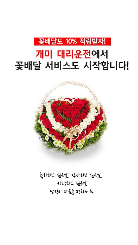* 대리운전,꽃배달,퀵서비스,탁송을 이용하시면 현금적립(본인/추천인) 해드리는 개미대리운전!! 어플제작문의는 1877-1113입니다.