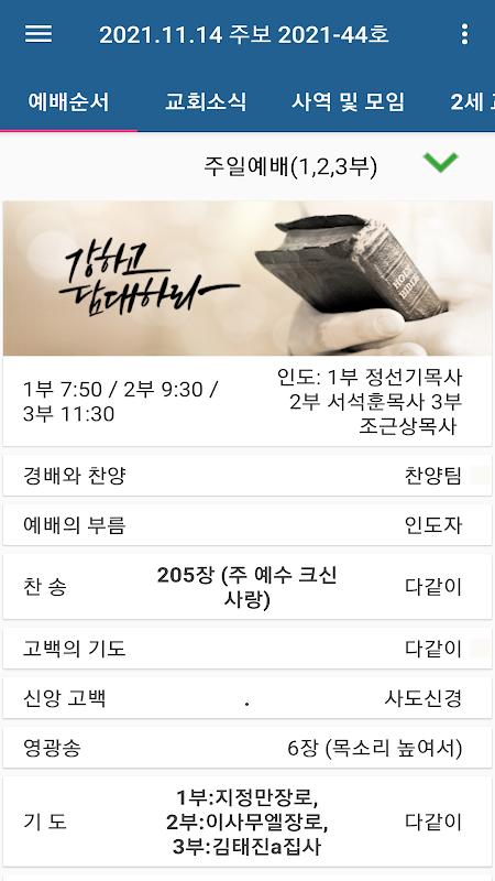 Ini adalah aplikasi mingguan cerdas yang memungkinkan anggota Gereja Sample J untuk melihat buletin mingguan di ponsel cerdas mereka alih-alih buletin kertas.