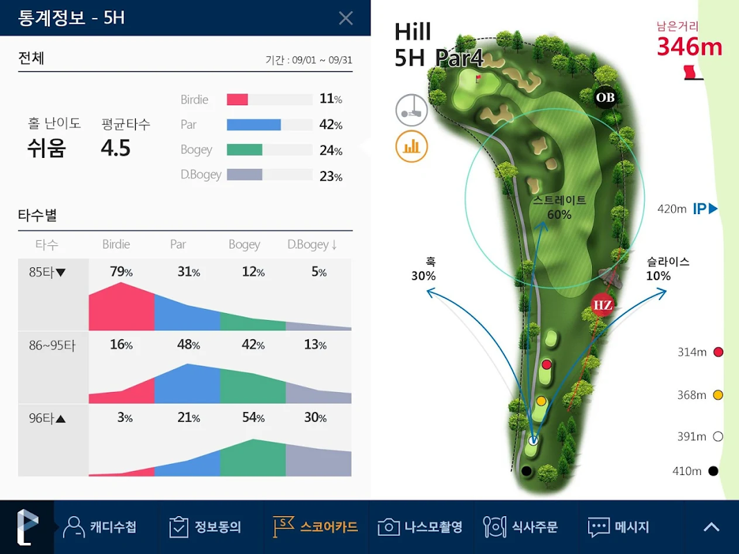 내장객의 스코어카드 및 나스모영상 제공을 기본으로 홀별 흥미롭고 유익한 라인딩정보를 제공함으로 유저들의 골프 라운딩의 실력향상에 대한 정보를 제공하는 서비스입니다.