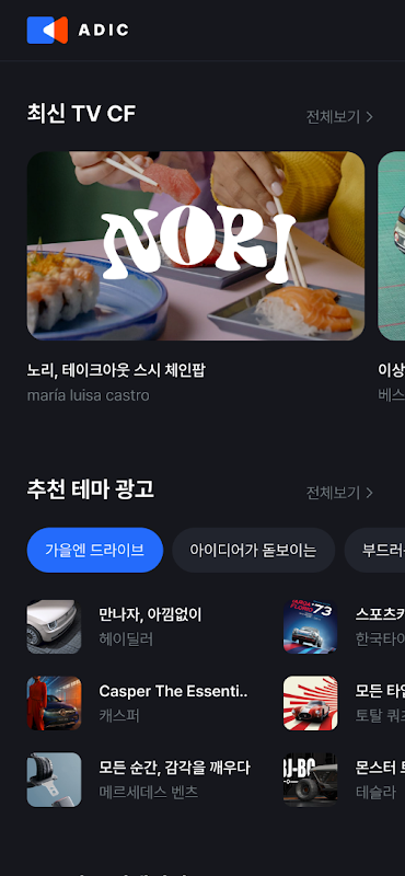 Anda dapat memeriksa semua jenis periklanan, termasuk TVCF, radio, media cetak, iklan luar ruang, online, seluler, iklan virtual, dan iklan luar negeri.