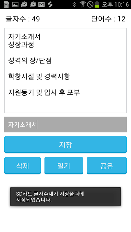 Informasi APK 글자수 세기(자기소개서 작성)