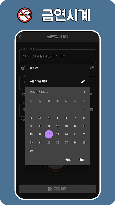 - Anda dapat mengatur tanggal mulai berhenti merokok dari sekarang atau kalender dan waktu terpisah.