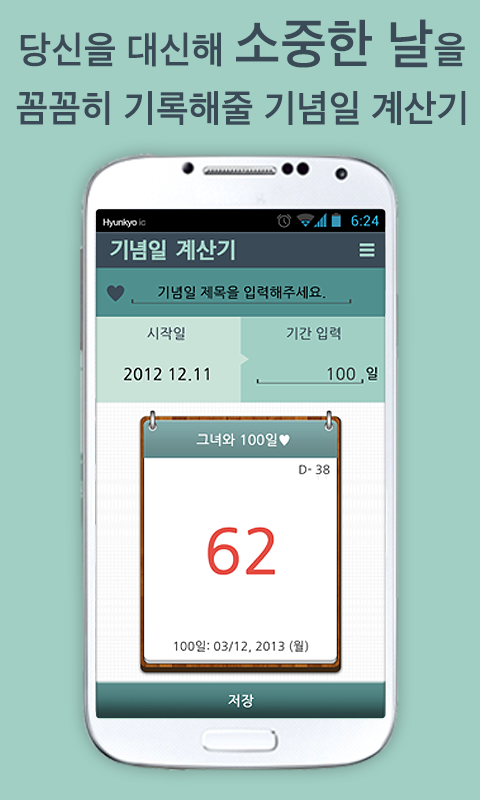 기념일마다 몇 일 남았는지 또 100일이 언제인지 정확하게 체크 할 수 있습니다.