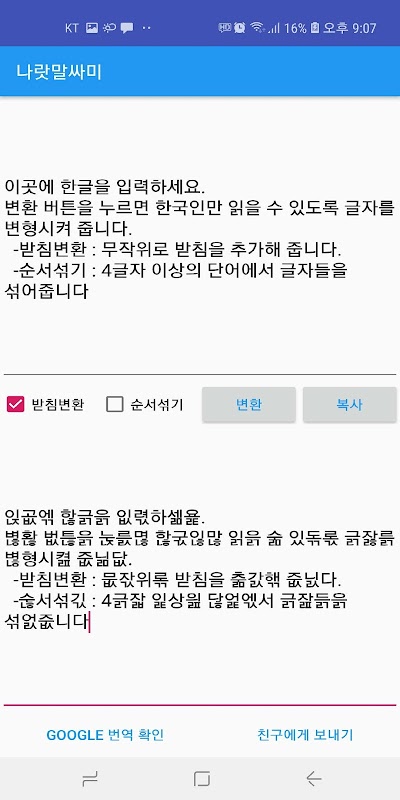 나랏말싸미 - 한글암호화, 한국어 번역 방해기 1.0