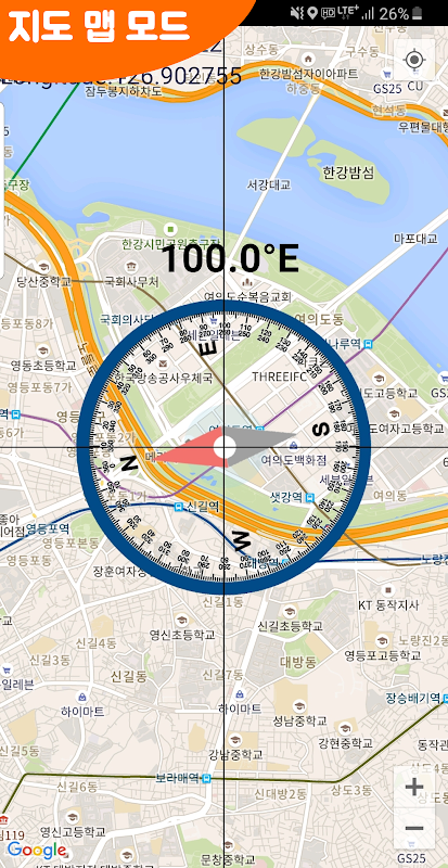 - 위성 모드 나침반 사용시 지리적 현재 위치 파악이 용이하며 아파트 동의 정확한 방향을 파악하는데도 활용 될 수 있습니다.