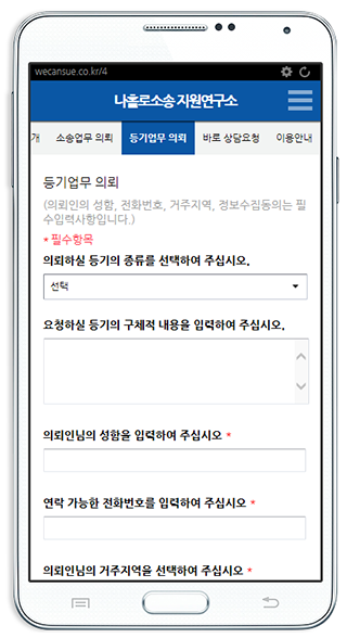 - 다양한 경험을 가진 여러 명의 담당변호사가 여러분을 도와드립니다(담당변호사는 계속 충원될 예정입니다).