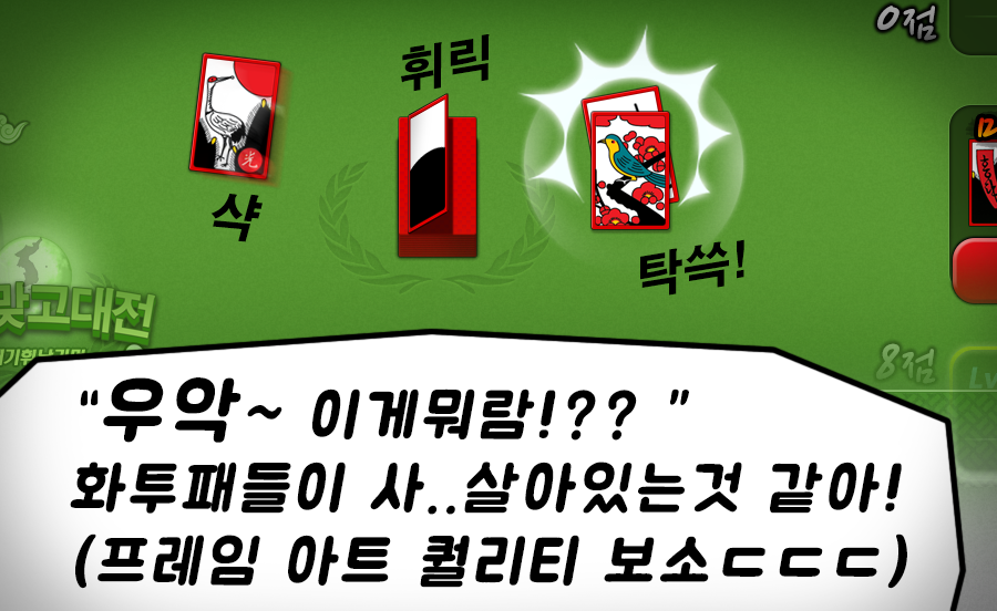 남한북한 병사들이 맞고대결을 펼치는 유쾌코믹한 온라인 맞고게임 입니다.