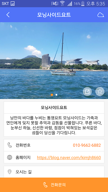 해양레저 업체 소개 및 위치, 전화예약 홈페이지 예약 기능 제공 앱