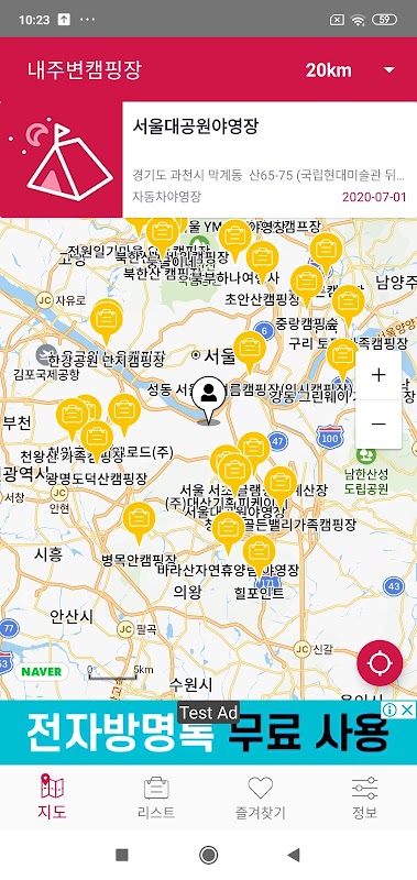 내 주위 캠핑장 - 캠핑장 위치, 지도 정보 1.0
