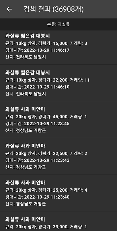 농산물 실시간 경매 - 최신 농산물 경매 거래내역 확인 1.0.72