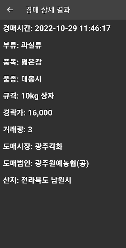 농산물 실시간 경매 - 최신 농산물 경매 거래내역 확인 1.0.65