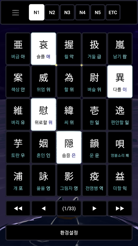 Ini adalah aplikasi yang cocok dengan karakter kanji Jepang dengan 2136 karakter.
