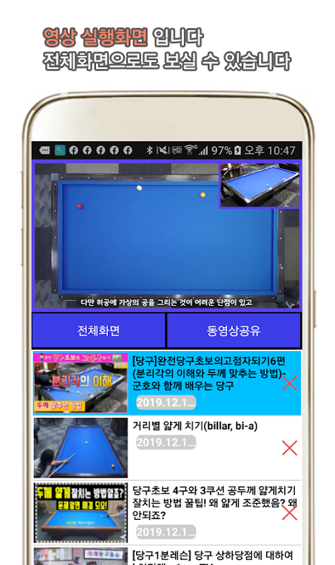★ 당구마스터 에서 사용하는 동영상은 유튜브 동영상 API 인터페이스를 사용합니다.