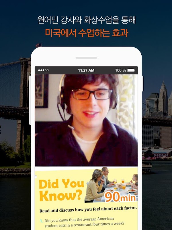 1. 모바일에서 북미 원어민 강사와 얼굴을 보며 1:1 화상 수업