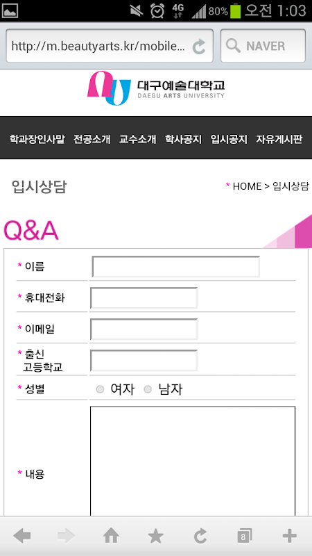 * 입학상담, 학과뉴스, 학과갤러리, 실습실투어