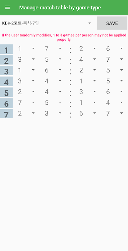 1. Secara otomatis menghasilkan braket dengan memilih jumlah pertandingan sebagai KDK (ganda)/tunggal (tim)/Hanul (ganda)/Hanul (pertandingan AB)/pertandingan Cheongbaek/tunggal (tim)