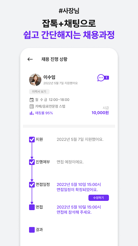 2. 구직자님과 사장님이 자유롭게 소통할 수 있는 잡톡이 개선되었어요.