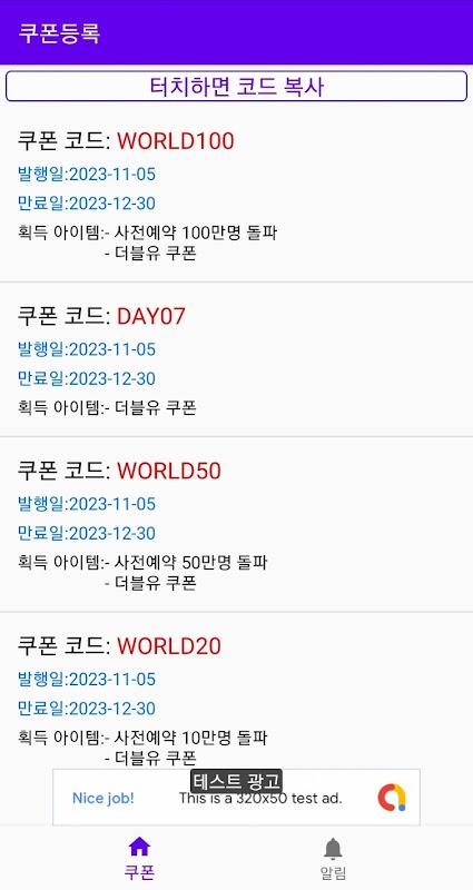 Kupon W Cross World akan diberitahukan melalui pemberitahuan push.