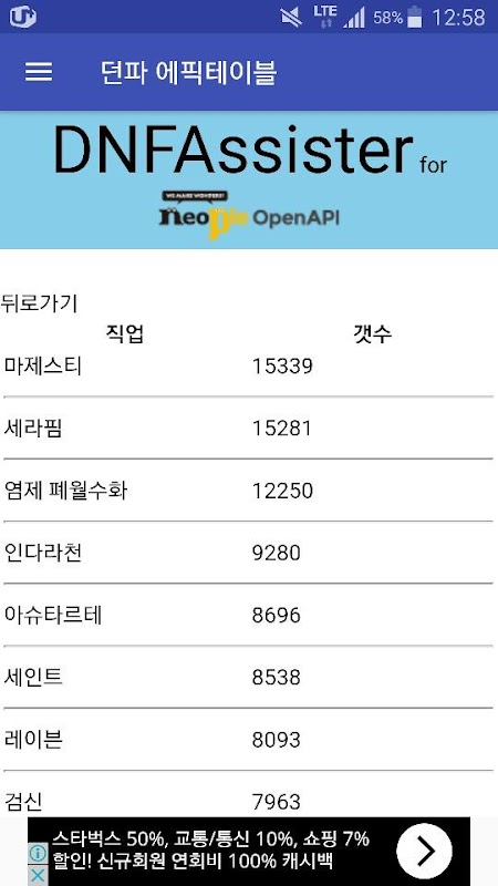 Aplikasi ini mencoba berbagai tugas menggunakan API dari game online Dungeon & Fighter.