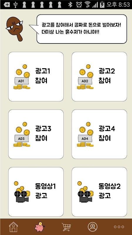 Aplikasi ini memberikan banyak uang! Kami memesan iklan daripada kebanyakan aplikasi apapun.Jika 3-5 menit dapat diperoleh 1000 won belasungkawa.
