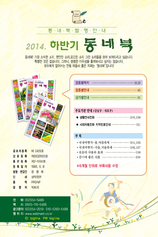 아파트, 상가, 주택, 사무실등에 무료 배포하는 지역광고 전문지인 동네북입니다.