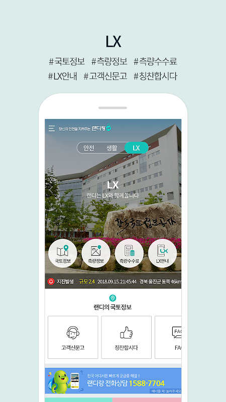 - LX한국국토정보공사 서비스에 대한 문의나 고객의견 등 고객과 소통하는 창구 기능
