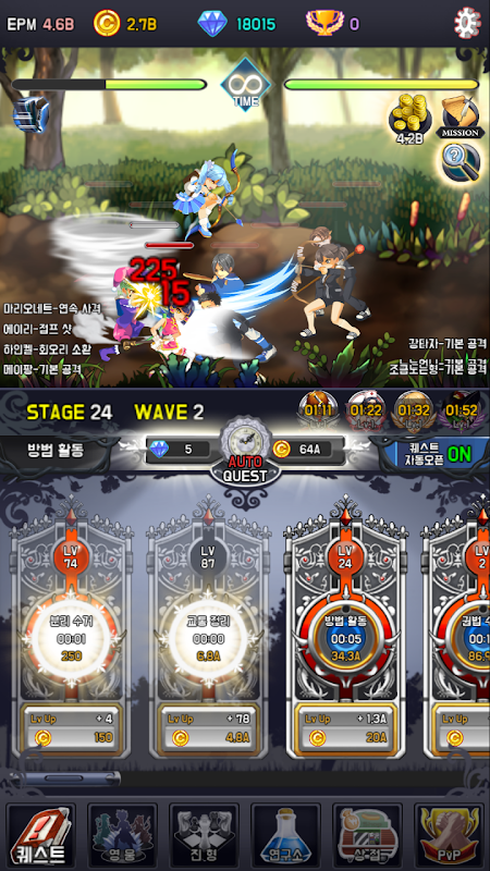 - 전투는 자동으로 진행되며, 방치하면서 절전모드로 게임을 즐길 수 있습니다.