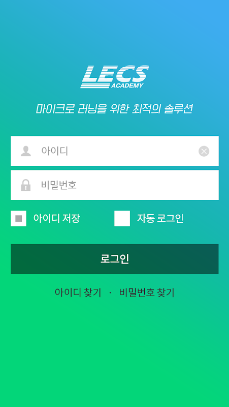 PC환경의 렉스 아카데미(http://lecs.hunet.co.kr)의 아이디와 비밀번호로 로그인 가능하며, 주요 서비스를 본 모바일 앱에서도 사용하실 수 있습니다.