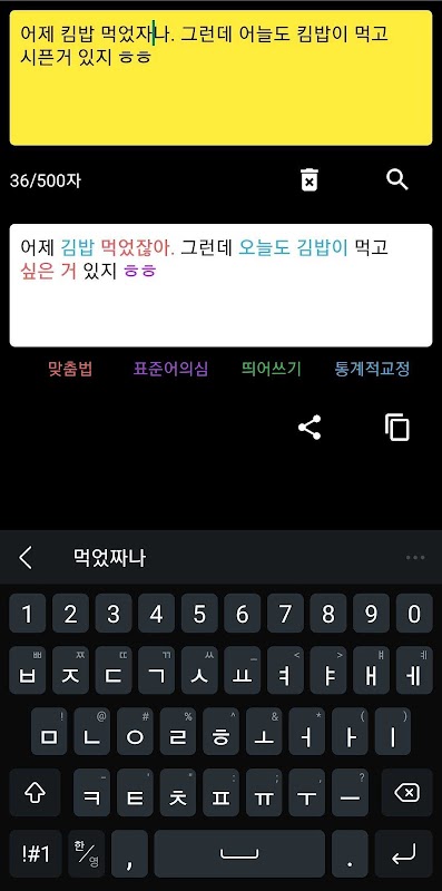 Apakah Anda mengalami kesulitan dengan ejaan bahasa Korea? Sekarang Anda dapat menggunakan aplikasi kami untuk membuat tulisan Anda lebih sempurna. Jika Anda memasukkan kalimat atau kata hingga 500 karakter ke dalam aplikasi, aplikasi akan secara otomatis memeriksa ejaan Anda dan menyarankan koreksi. Selain itu, konten yang diperbaiki dapat langsung disalin atau dibagikan, yang sangat memudahkan.