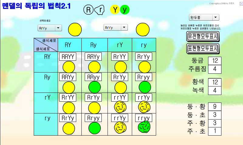 유전형 모두 표시 버튼과 표현형 모두 표시 버튼을 이용하여 한꺼번에