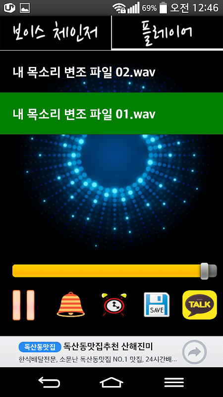 3. 변조 된 목소리를 카톡 공유, 알람 셋팅, 벨소리 셋팅 등 다양하게 이용