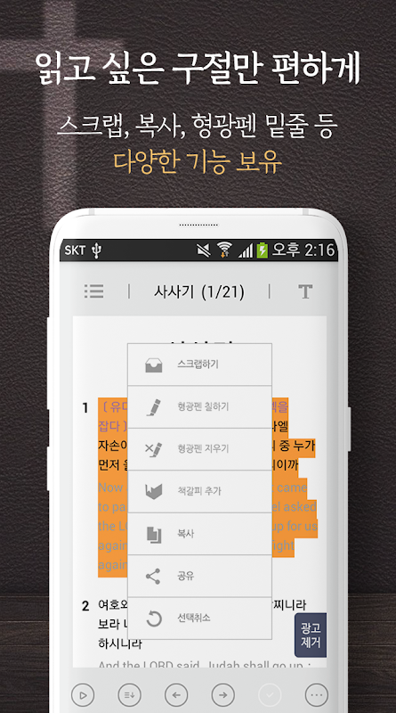 - Dengan menyediakan fungsi stabilo, Anda dapat memeriksa bagian-bagian untuk ayat-ayat Alkitab yang penting.