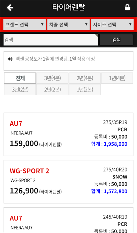 타이어 공장도가, 소비자가, 렌탈 부품업체 등 정보 가격 확인하시고