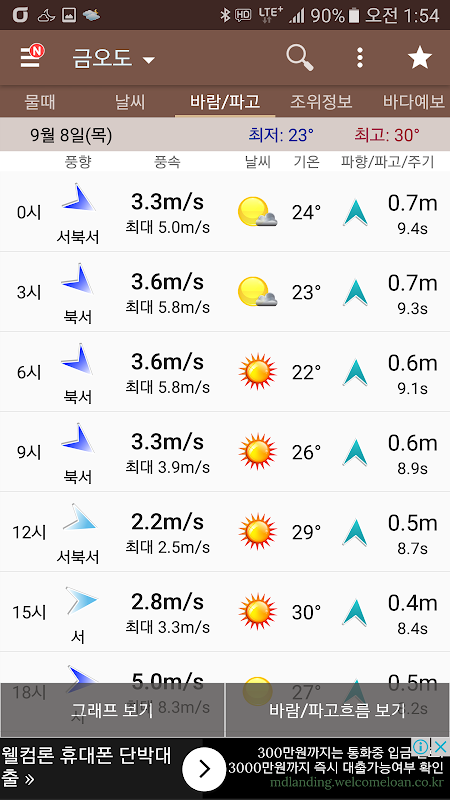 Versi lama 물때와날씨(조석예보, 물때표, 바다날씨, 바다낚시)
