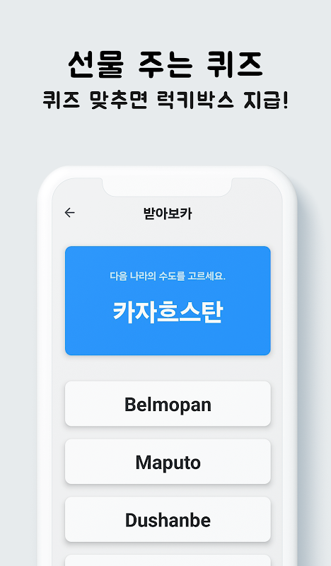 Tentang 받아보카 - 나라별 수도 영단어 (영어) 돈버는 퀴즈
