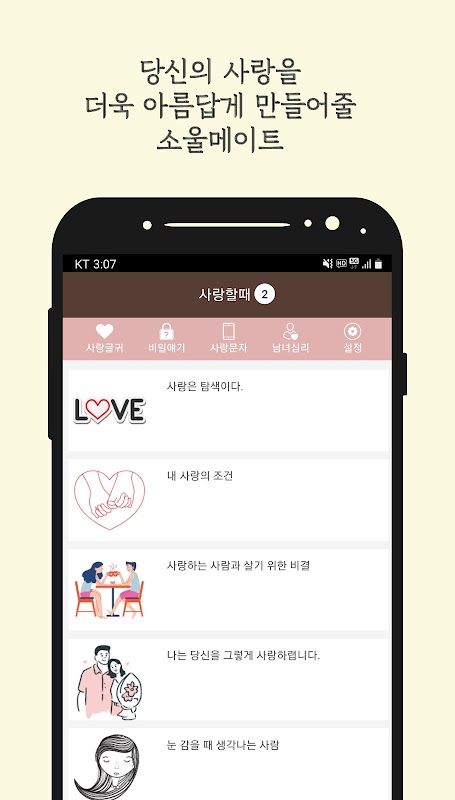 사랑할 때 앱은 그런 사랑의 감정이 담긴 예쁜 사랑 글귀와,