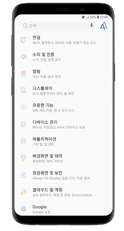 ※ 설정 > 디스플레이 > 글꼴 및 화면 확대