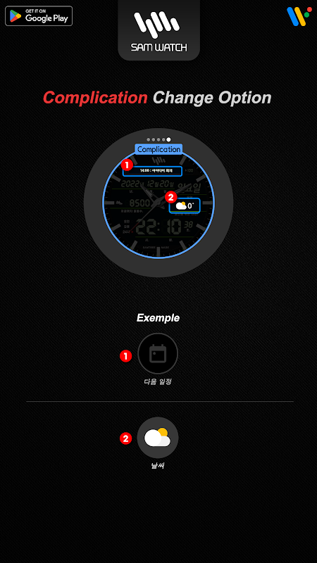 *Aplikasi smartphone adalah aplikasi tambahan di aplikasi Watchface yang menjelaskan panduan pengunduhan. Ini mungkin berbeda dengan tangkapan layar tampilan jam pada aplikasi ponsel cerdas dan tangkapan layar tampilan jam yang sebenarnya diunduh. Sebagian besar produk aplikasi Watchface SamWatch menyertakan aplikasi untuk ponsel cerdas.