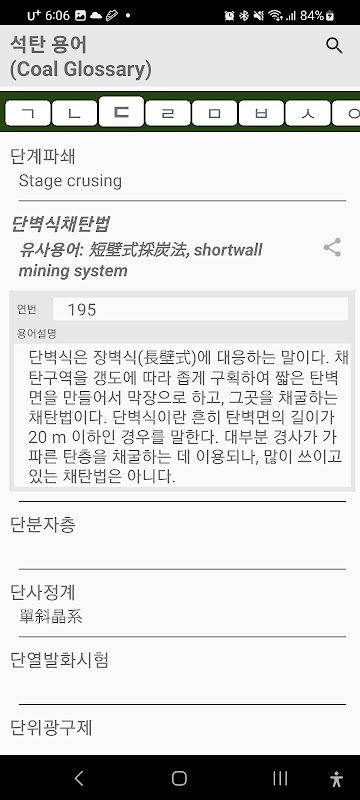 Penyediaan data Korea Coal Corporation, offline, klasifikasi abjad, pencarian istilah, fungsi bookmark