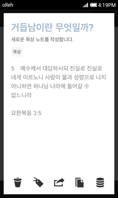 ➌ Sentuh Catatan dilengkapi dengan ayat dari ayat Alkitab yang berbunyi layar dan pilih di mana Anda menekan menu check-berbentuk di bagian bawah layar memungkinkan Anda untuk membuat catatan.