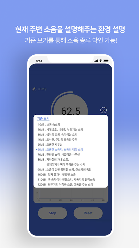 ✔ 현재 데시벨을 기준으로 최소, 최대, 평균 데시벨 확인 가능!
