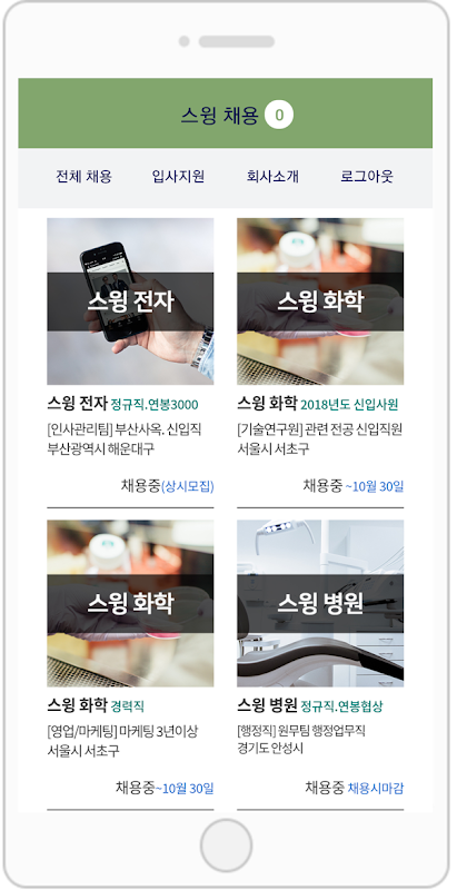앱제작 서비스 '스윙'으로 제작한 스윙 채용 샘플앱