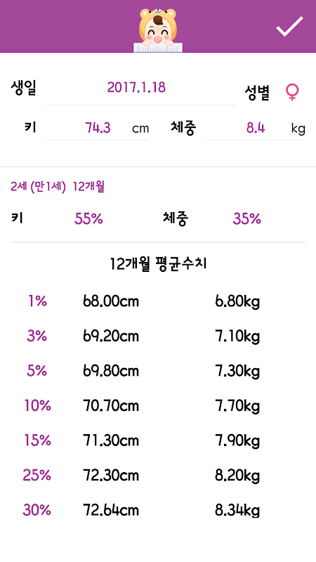 해당 앱은 2018년 1월 발표된 질병관리본부 소아성장도표를 기준으로 하였습니다.