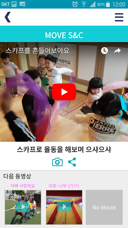 나열되어 있으며, 동영상을 터치하여 시청합니다