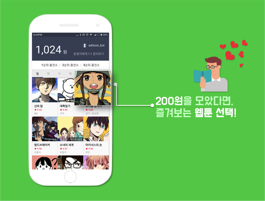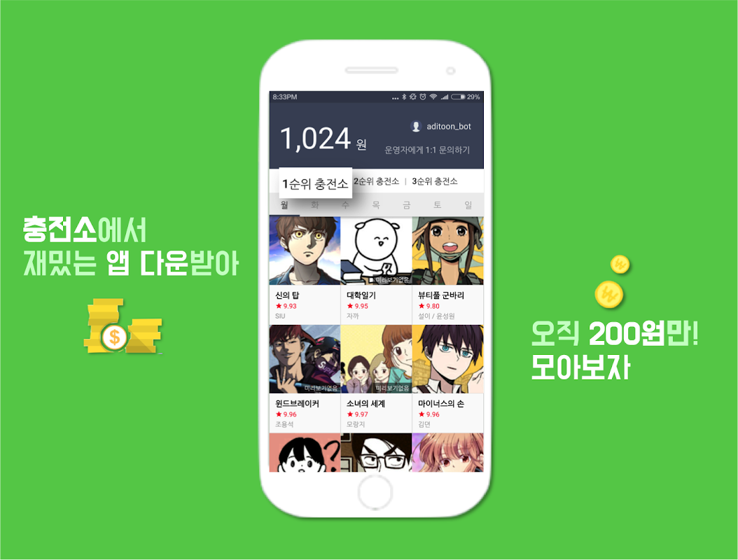 '애디웹툰'에서 1분만 충전하면 '네이버 웹툰 미리보기'가 공짜!!