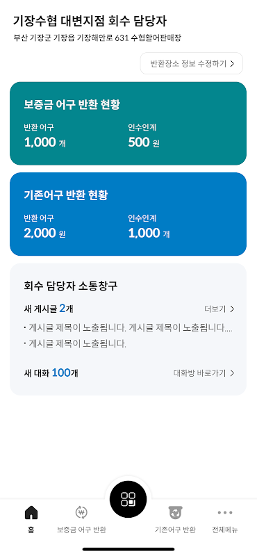Aplikasi “Fishing Gear Buoy Deposit” dikembangkan untuk memberikan kemudahan bagi nelayan, dll. yang merupakan subjek dari sistem deposit alat tangkap, dan pengelola pemulihan, dan fungsi utamanya adalah sebagai berikut.