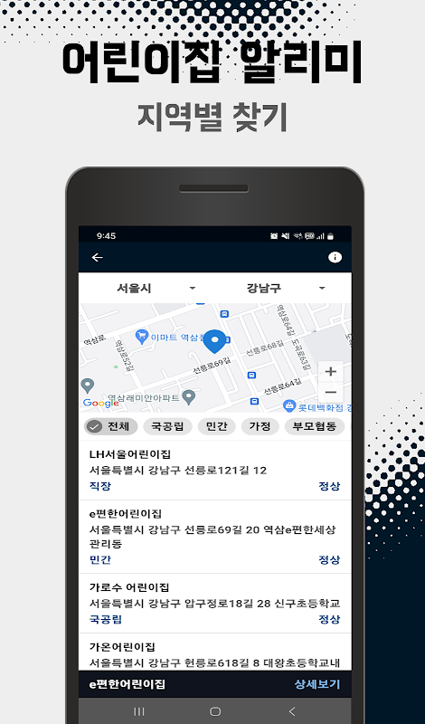 - Cari tempat penitipan anak di seluruh negeri: Anda dapat menjelajahi semua informasi tempat penitipan anak di wilayah yang Anda inginkan secara menyeluruh.