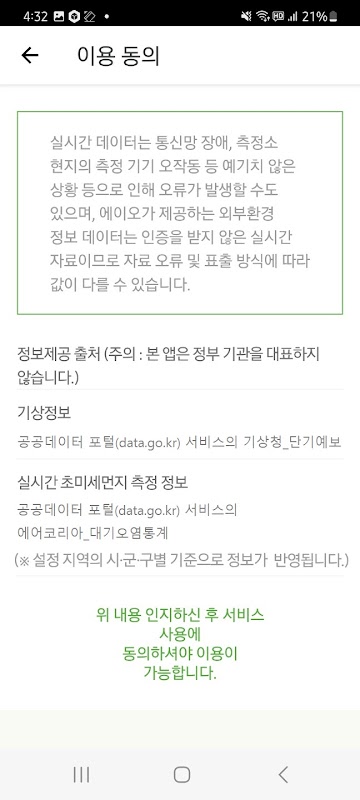 - Informasi cuaca ditampilkan berdasarkan kota/myeon/dong, dan informasi debu ultrahalus ditampilkan berdasarkan kota/kabupaten/distrik.