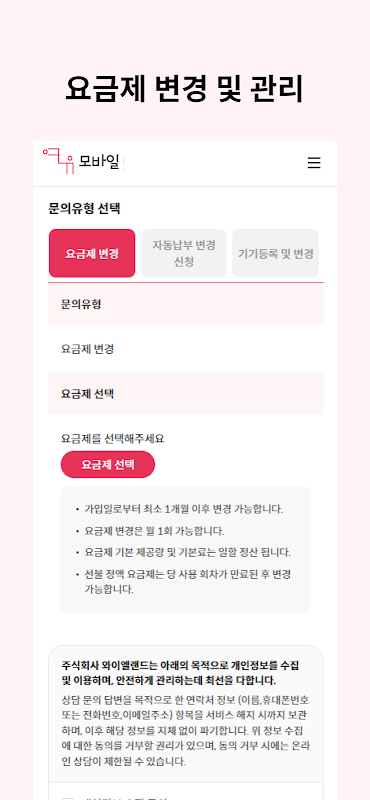 - Anda dapat mengajukan/mengubah secara langsung tanpa melalui pusat pelanggan, seperti pembayaran segera biaya komunikasi, perubahan metode pembayaran, permohonan layanan tambahan, dll.