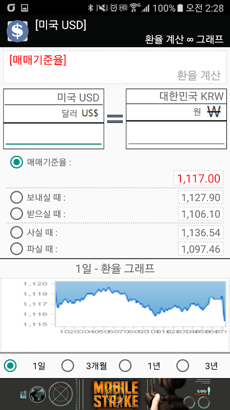 1-2. 1일, 3개월, 1년, 3년의 환율 변화 추이를 알 수 있는 환율 그래프 추가.